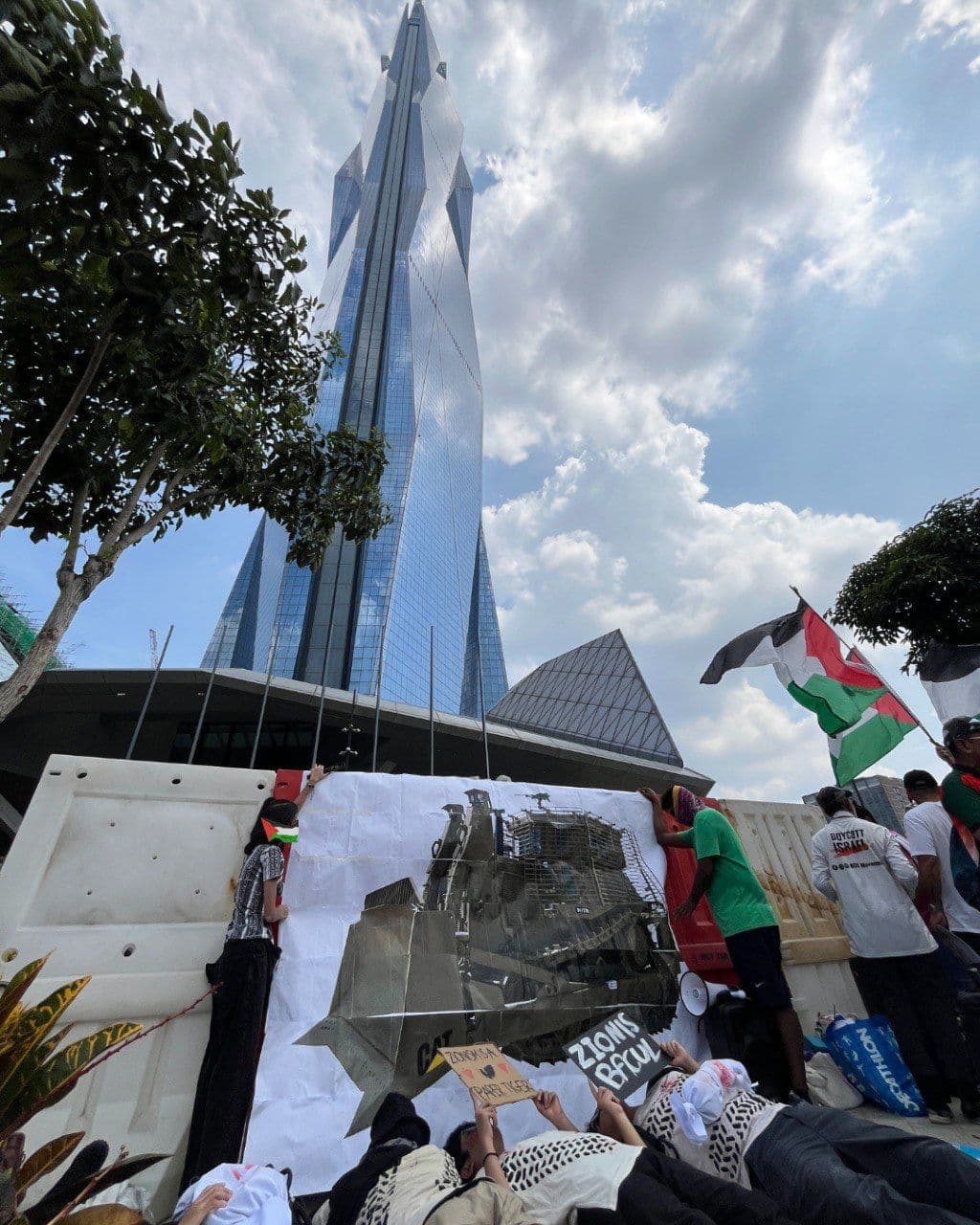Selaras dengan protes anjuran BDS Malaysia, GEGAR, Mahasiswa Melawan Genosid (SAGM), AKSI, Artivist Network, Klima Action Malaysia (KAMI), dan rakyat Malaysia dari pelbagai lapisan masyarakat telah bergabung kuasa dalam satu aksi die-in untuk bantah keterlibatan PNB dan Sime Darby dengan Caterpillar.